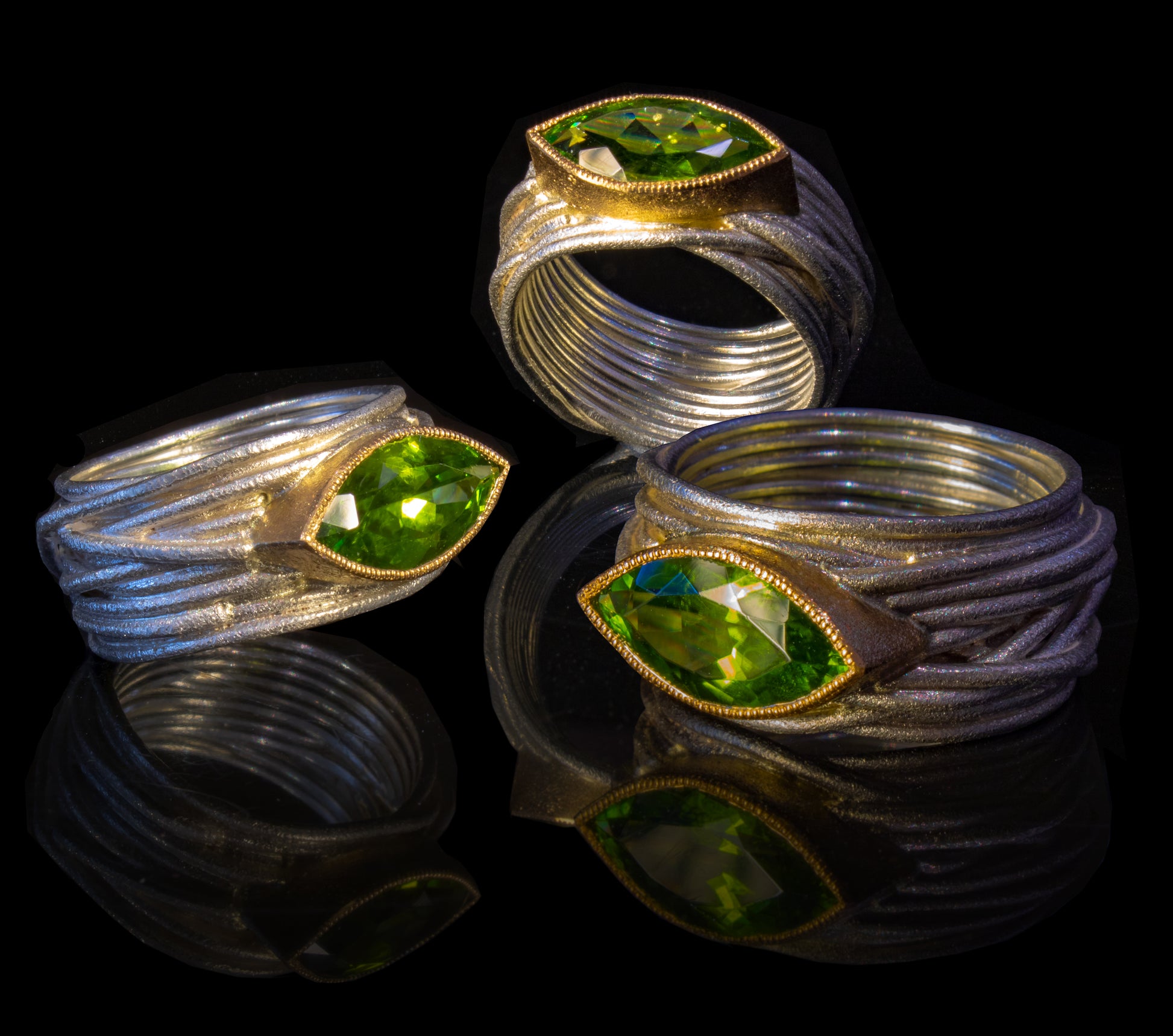 Handarbeit in Silber 925 und 750 Gelbgold mit einem Peridot/Olivin.